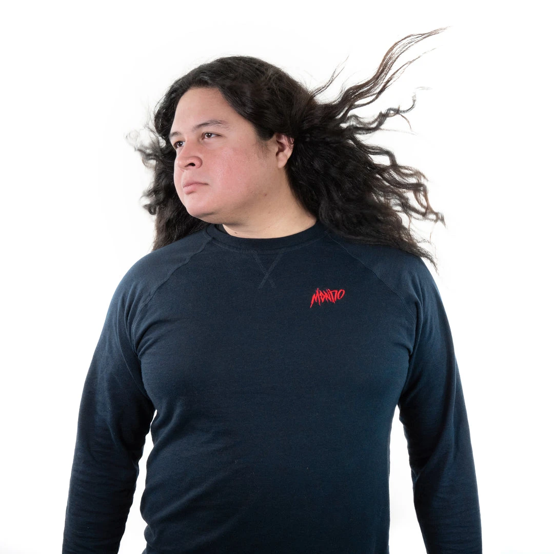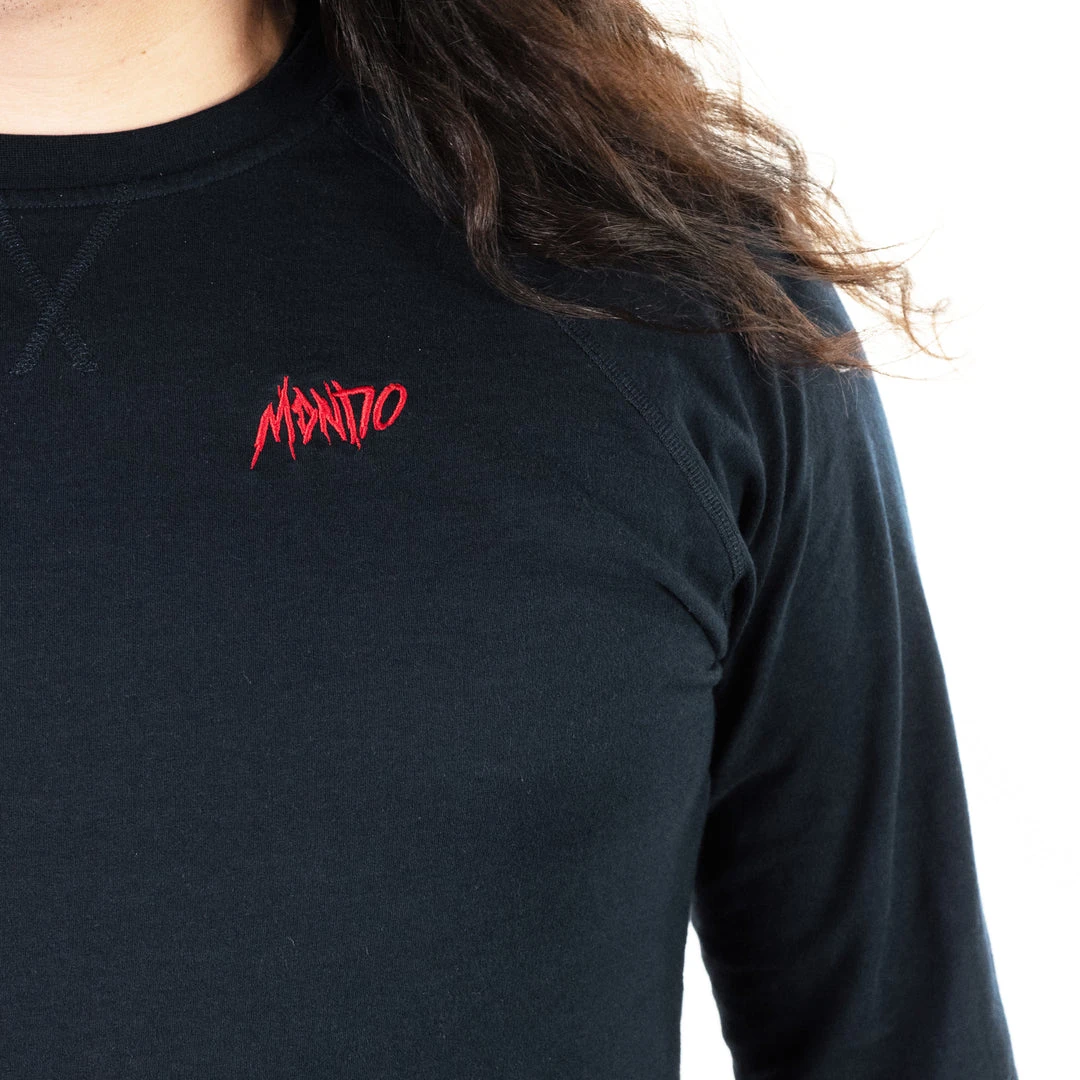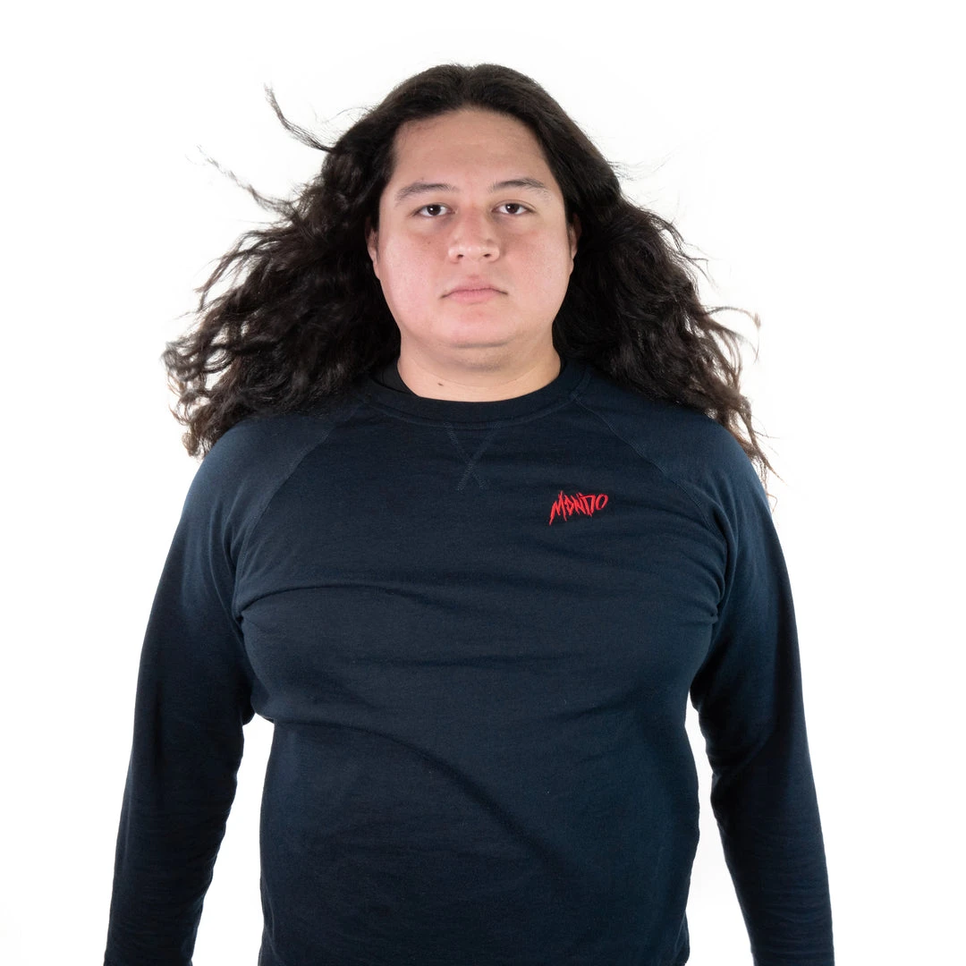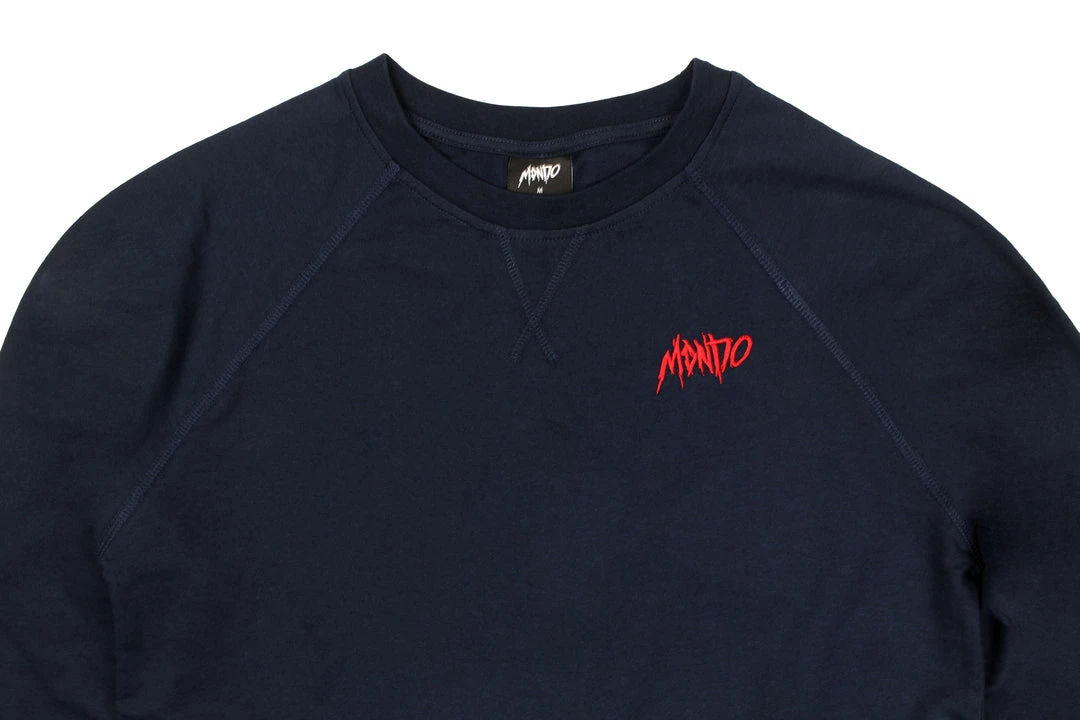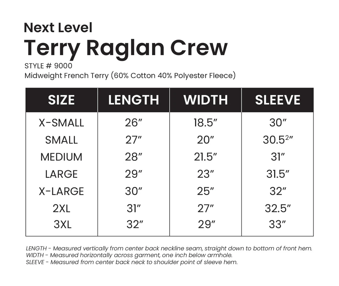 Embroidery by Fine Southern Gentlemen on a Midnight Navy Next Level terry raglan midweight crew neck sweatshirt. Includes a sewn-in silk neck label.