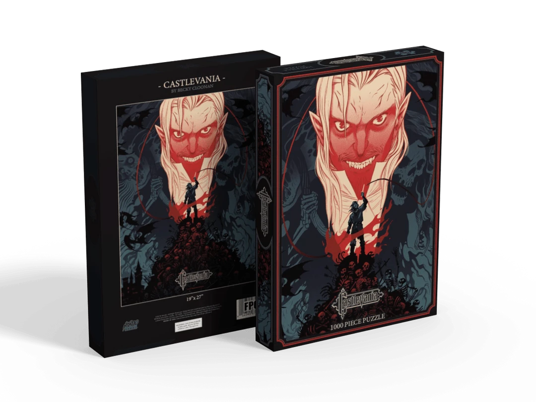 Piece together the blood-soaked, centuries-spanning Nintendo/Famicon saga of Dracula vs. Belmont(s) – Castlevania. This 19″x27″, 1000-piece Mondo puzzle features stunning art by Becky Cloonan from her 2016 Mondo poster release.