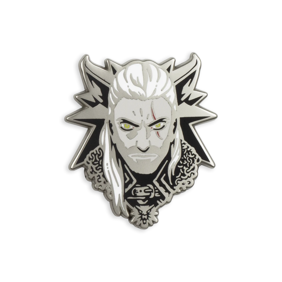 Featuring a new design from artist Becky Cloonan, this matte silver enamel pin shows Geralt, βthe Witcherβ, from THE WITCHER 3: WILD HUNT.
