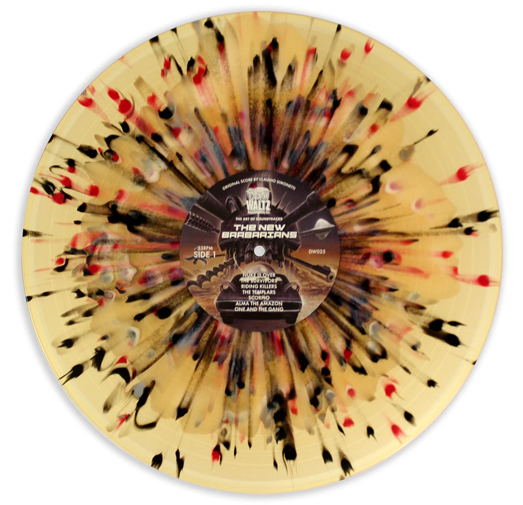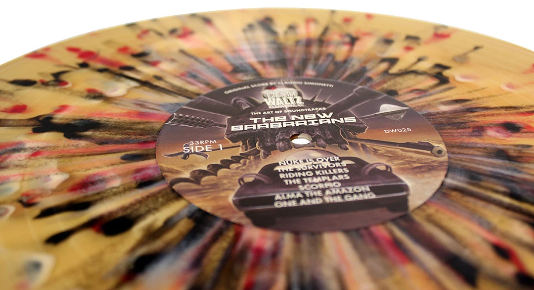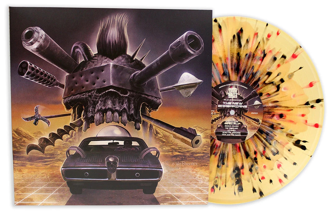 Death Waltz Recording Company has used our souped-up 1984 VW Scirroco to make a journey into the post-apocalyptic future of 2019 AD, and we are proud to return with a holy artefact: the amazing score to the 1983 Enzo G. Castellari classic THE NEW BARBARIANS, as composed by Claudio Simonetti (DAWN OF THE DEAD, SUSPIRIA). An epic tale of rebellion amongst the nuclear ruins, BARBARIANS pits a ruthless gang called the Templars, led by George “Anthropophagus” Eastman, against a deserter known only as Scorpion. What follows is the kind of bloodthirsty montage of flamethrowers and pompadours that only 80’s Italian genre cinema can provide.
