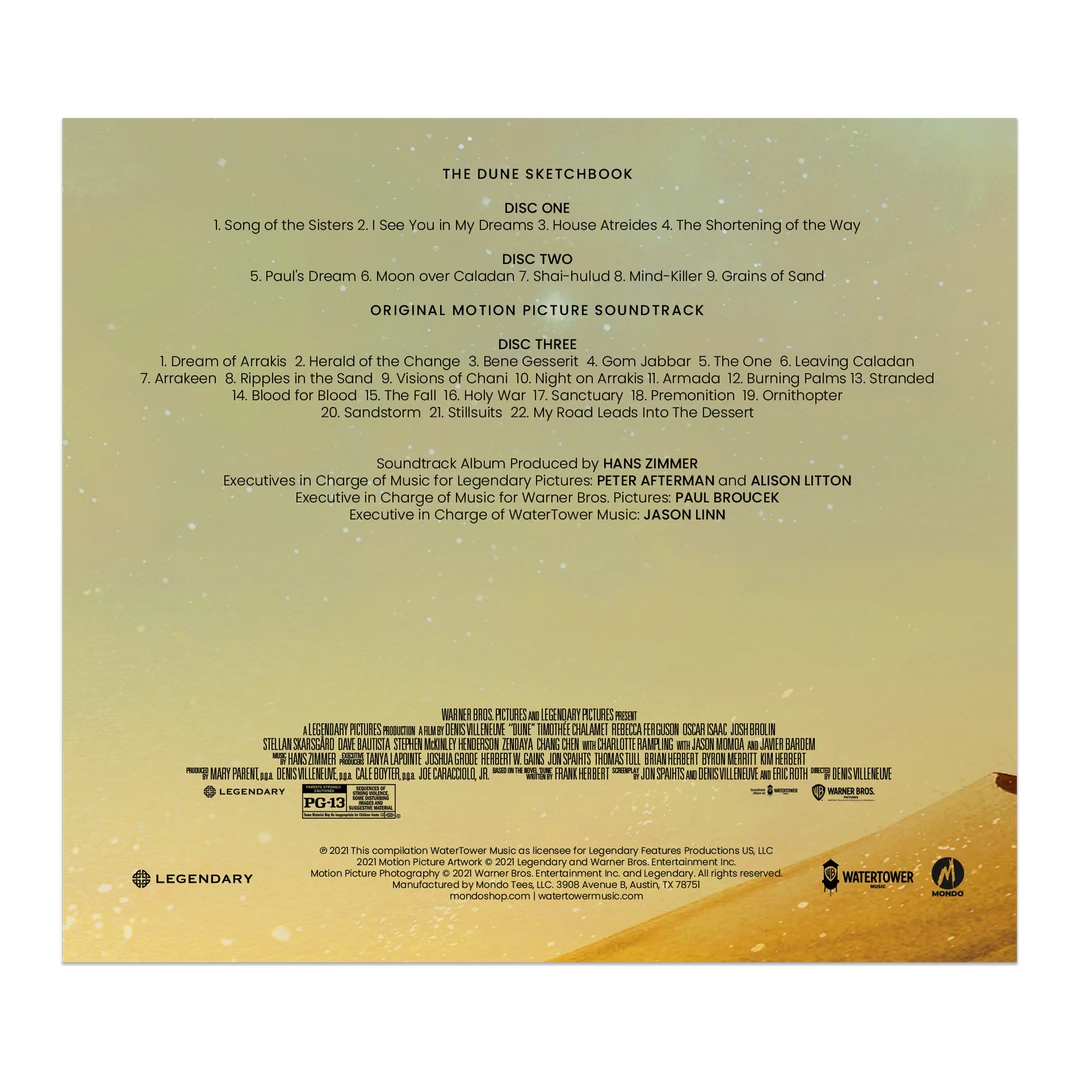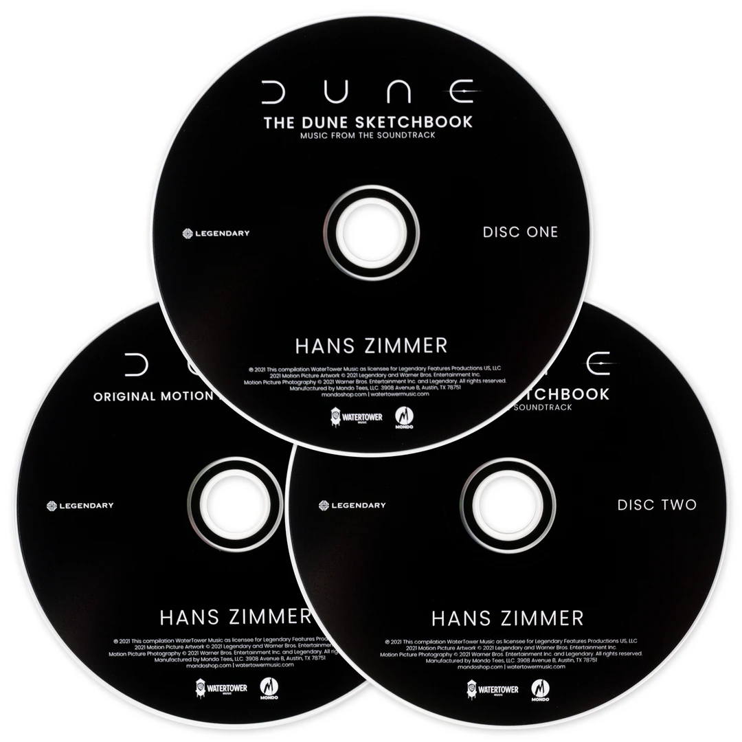 Deluxe 3XCD Digipack, featuring THE DUNE SKETCHBOOK and THE COMPLETE ORIGINAL SOUNDTRACK, packaged with a 20-page collectors booklet.