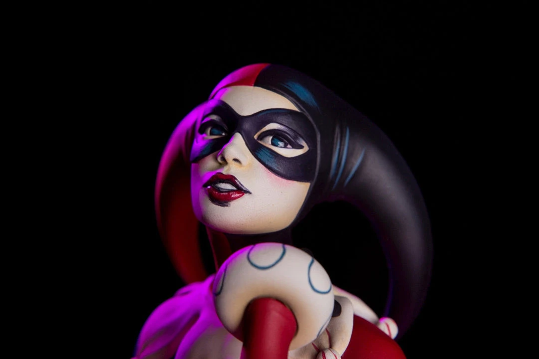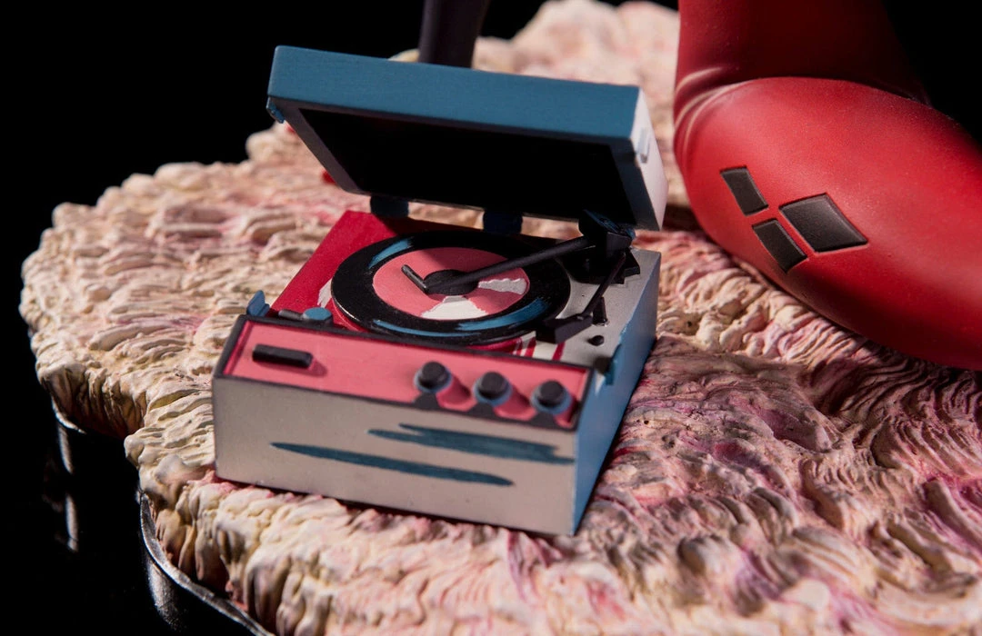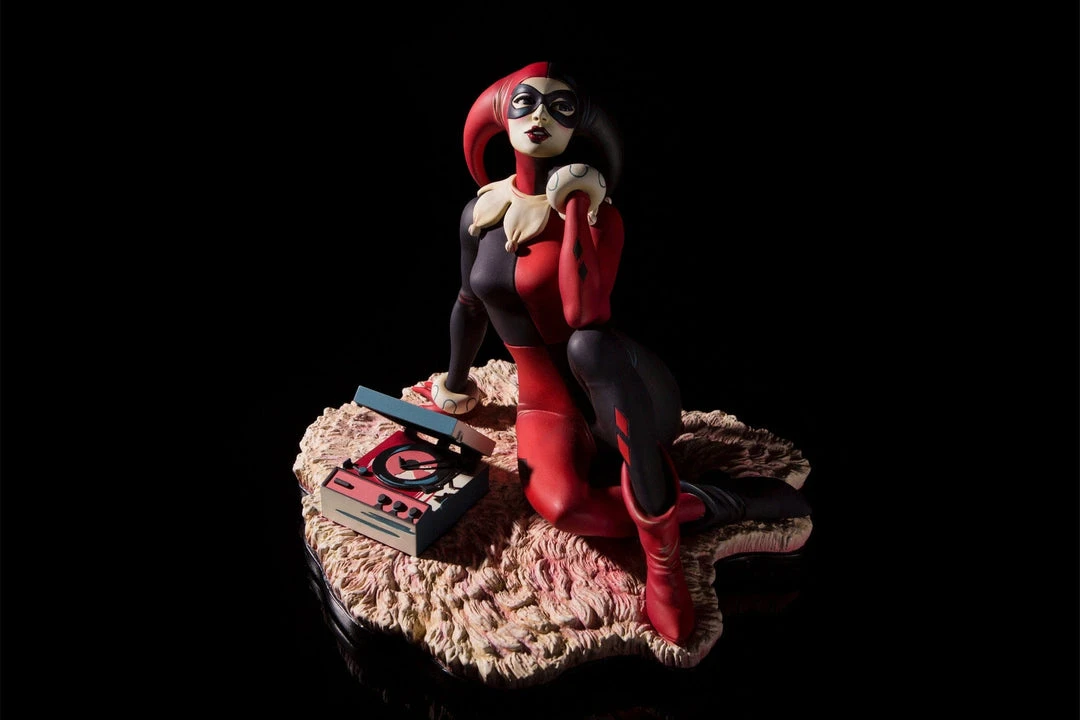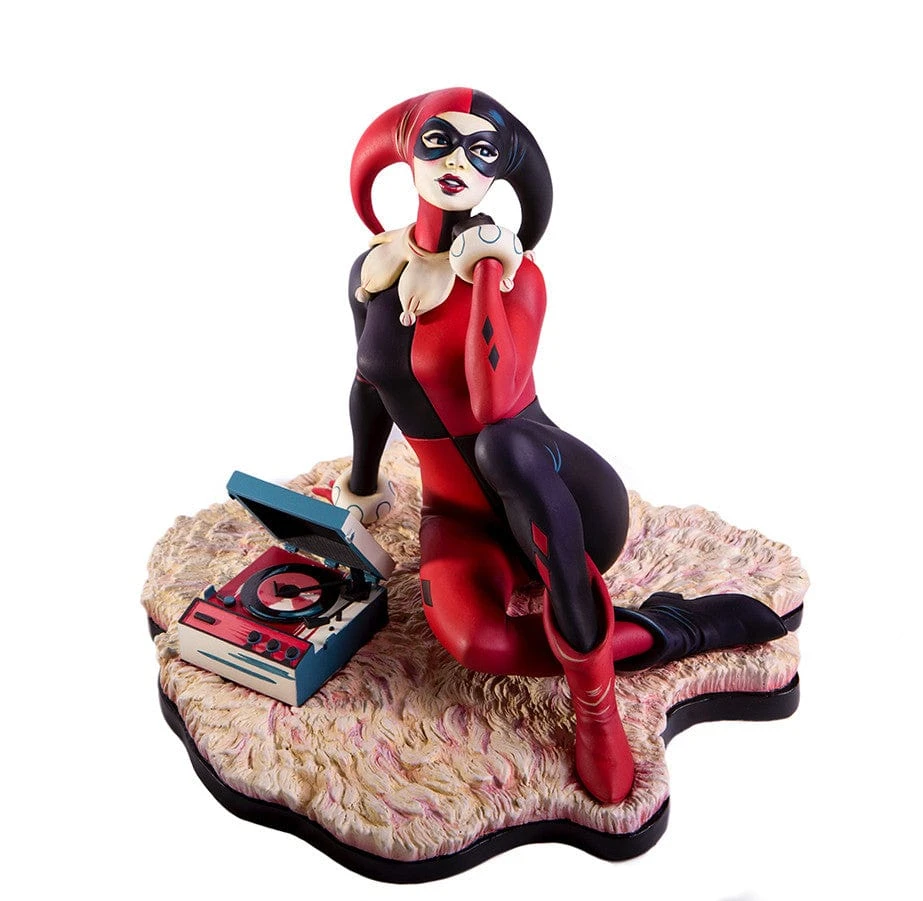 Based on the poster and 7″ vinyl record sleeve by Matt Taylor, the Waiting for My J Man statue features a lovelorn Harley Quinn, relaxing on a swanky shag carpet while listening to her favorite tunes, as she waits for a certain someone to come home.