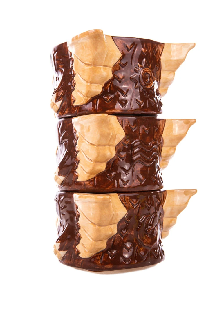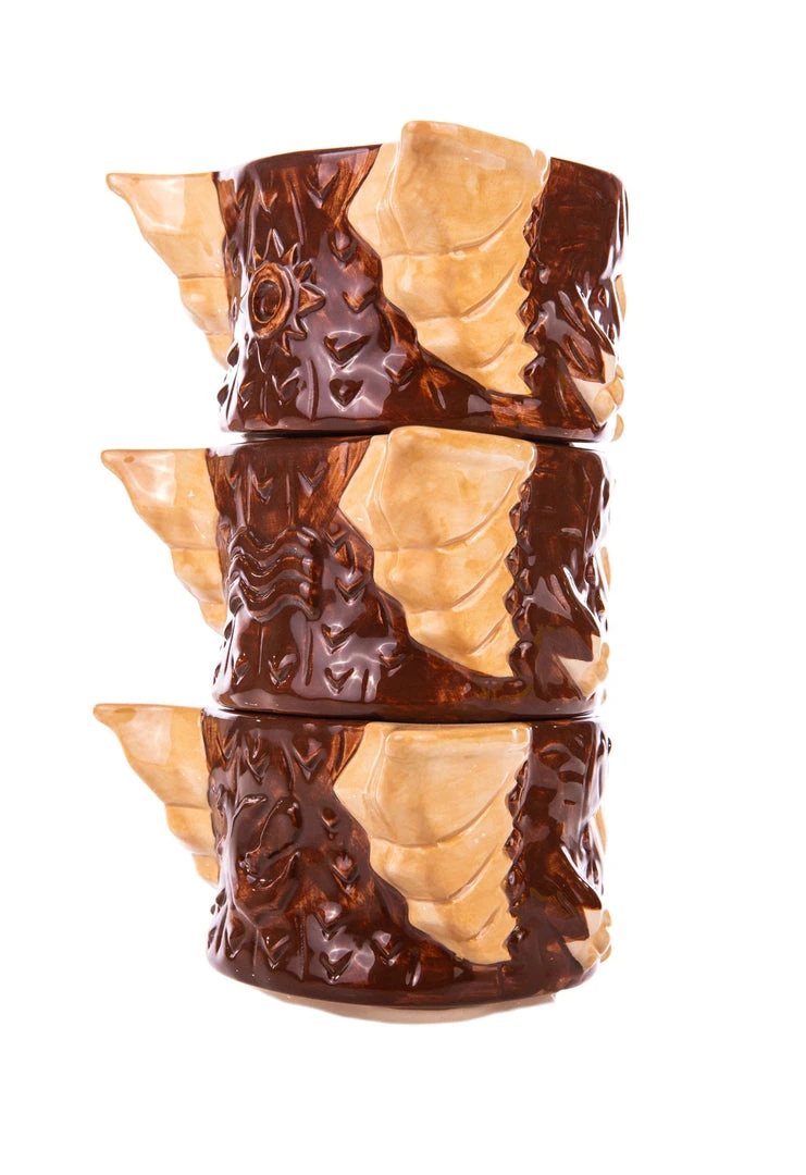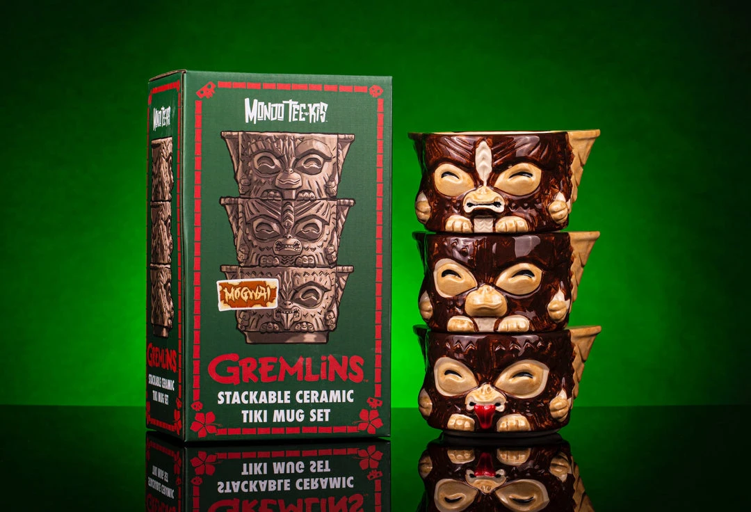 You know the rules, but can you remember to follow them? The Mogwai Tiki Stackers are 3 mini mugs that can be stacked into one tiki totem! Each mini mug holds approx. 8oz, and represents a different Mogawi with a rule-rune on the back- Gizmo with water, Stripe with bright light, and Hungry Mogwai with feeding after midnight! Designed Michael Bonanno, sculpted by Tom “Thor” Thordarson, and produced with the gremlins at Tiki Farm, The Mogwai Tiki Stackers will remind you that some rules shouldn’t be broken, but can be fun if they are!