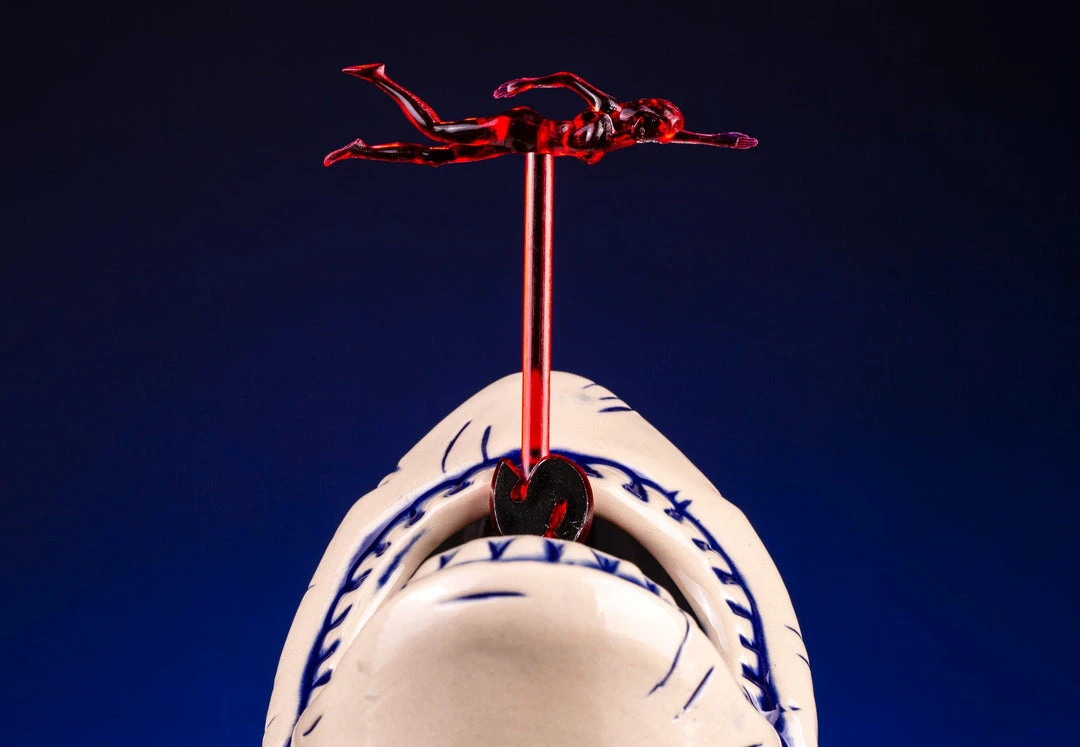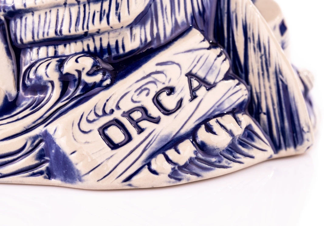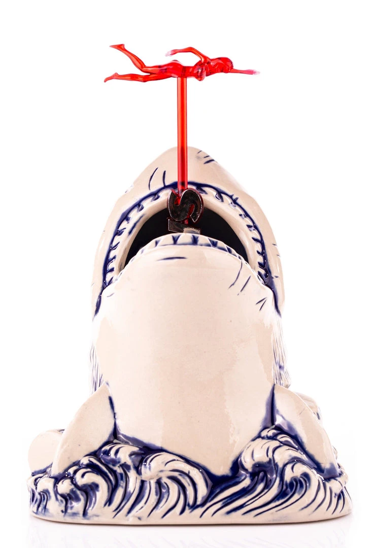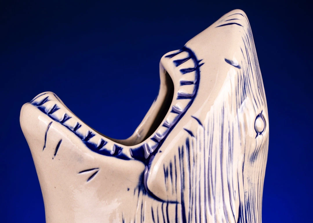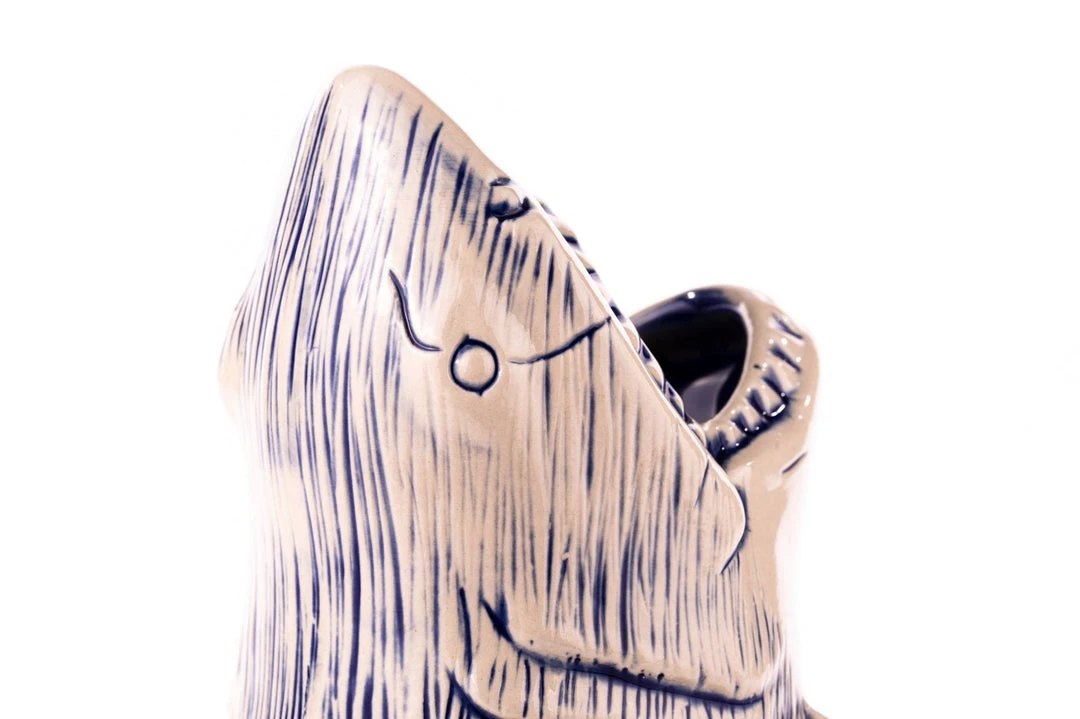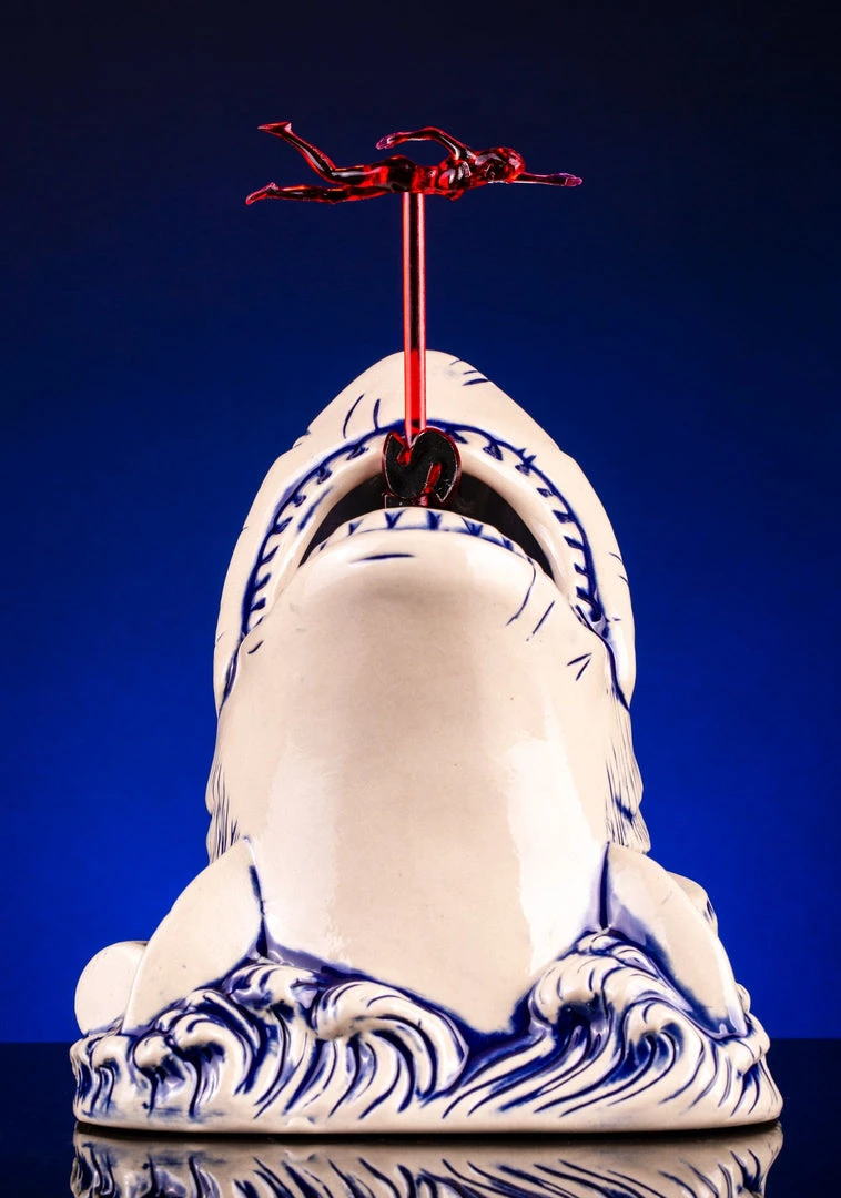 Just when you thought it was safe to close out your tab, it’s Bruce the Shark Tiki Mug from the blockbuster classic, Jaws! Bruce holds 22 ounces of chum (or whatever else you’d like fill him with), and includes a translucent red Swimmer Swizzle! With this mug, you’re gonna need a bigger shelf!