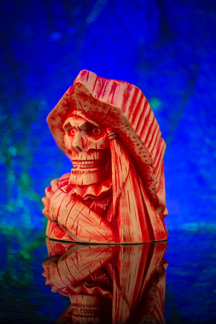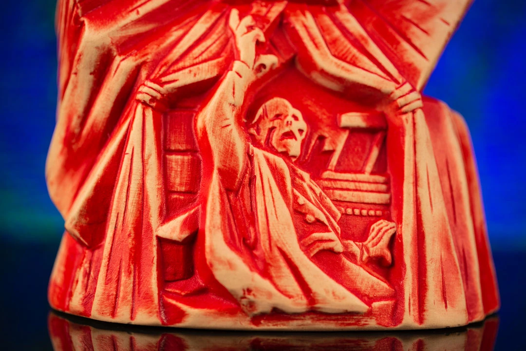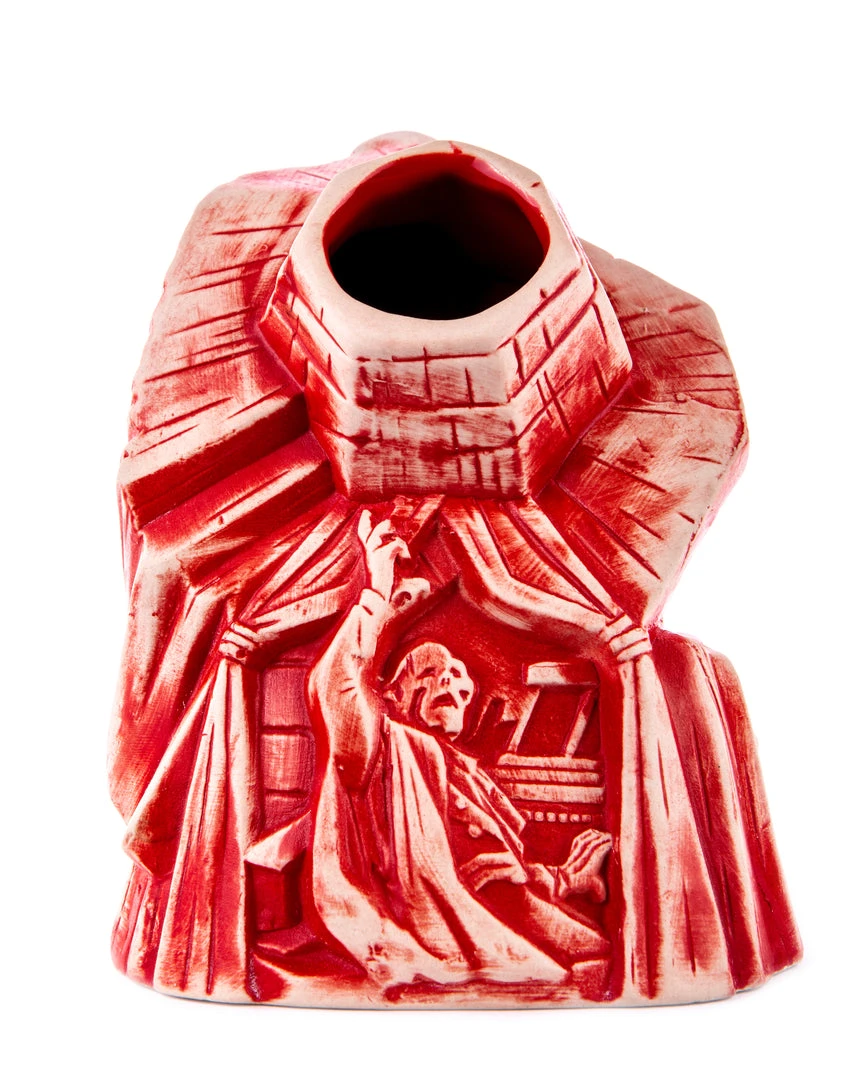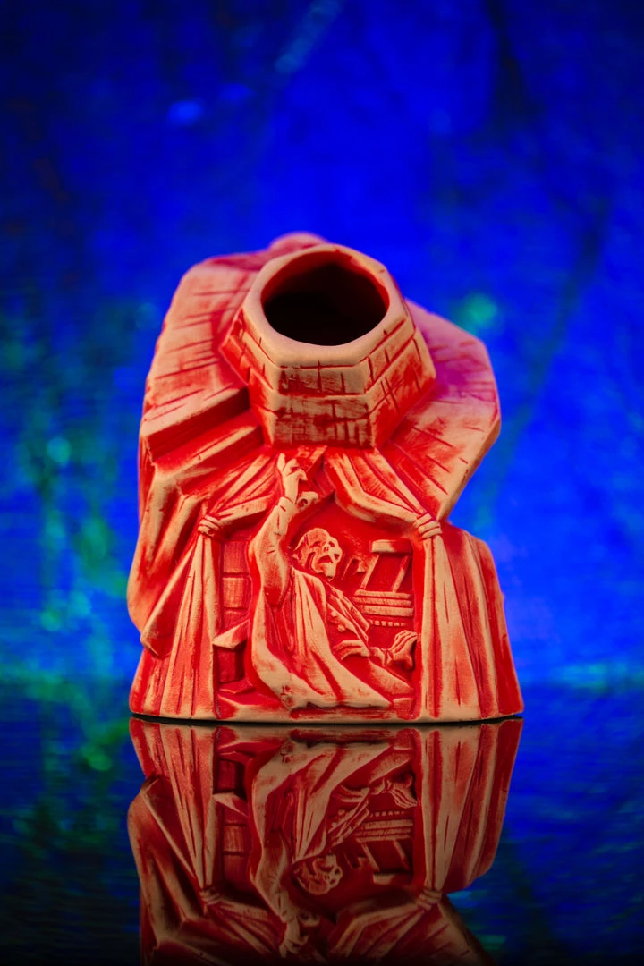 Lurking from backstage to bring you a horrifying vessel from which to savor your sinister spirits from, it’s the official Universal Monsters The Phantom of the Opera Tiki Mug! This monstrous mug is designed by the deadly Doug P’Gosh, sculpted by the mischievous Matthew Black, and produced with the help of the terrifying Tiki Farm team. The Phantom features his horrible visage on one side, a scream scene from the film on the other, and holds 16oz of the lethal liquid of your choice!