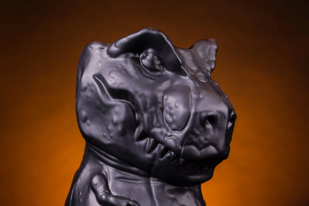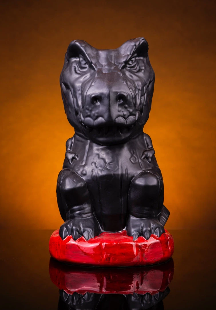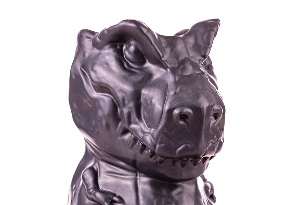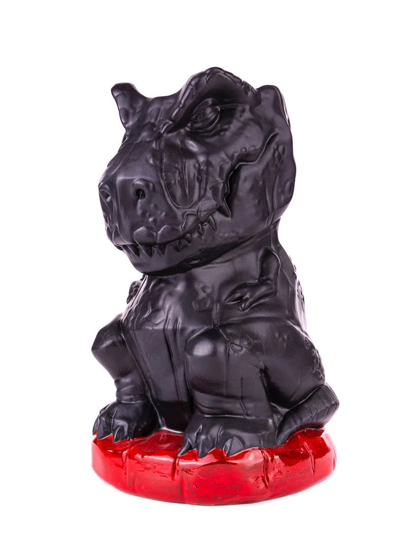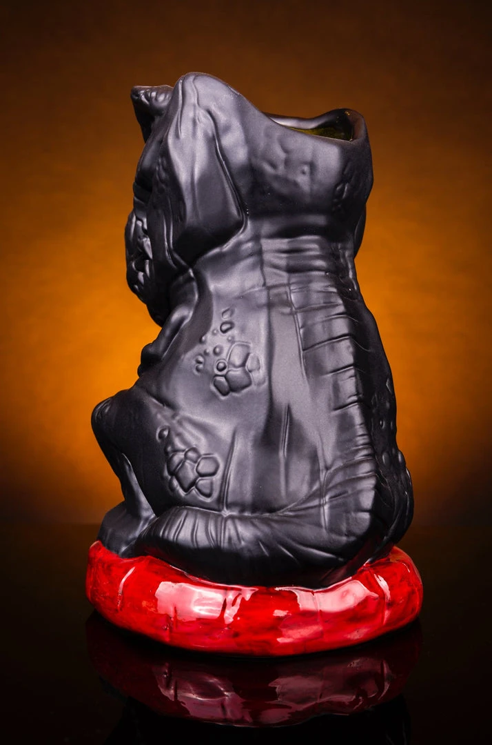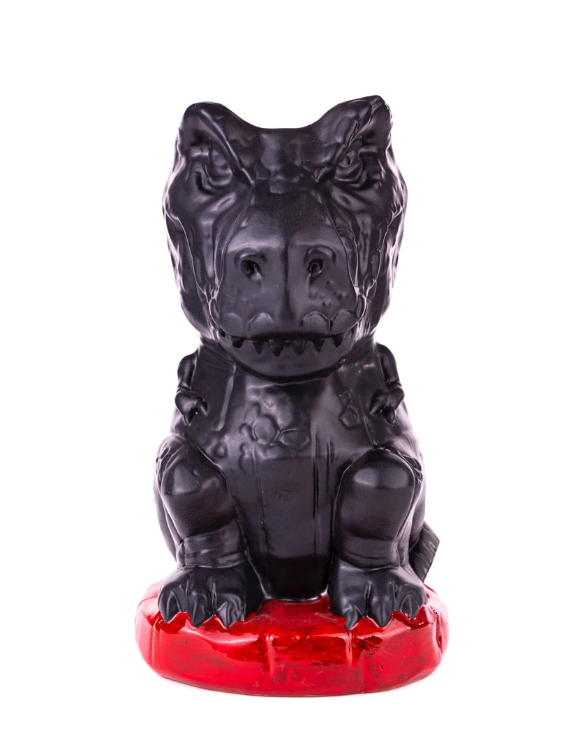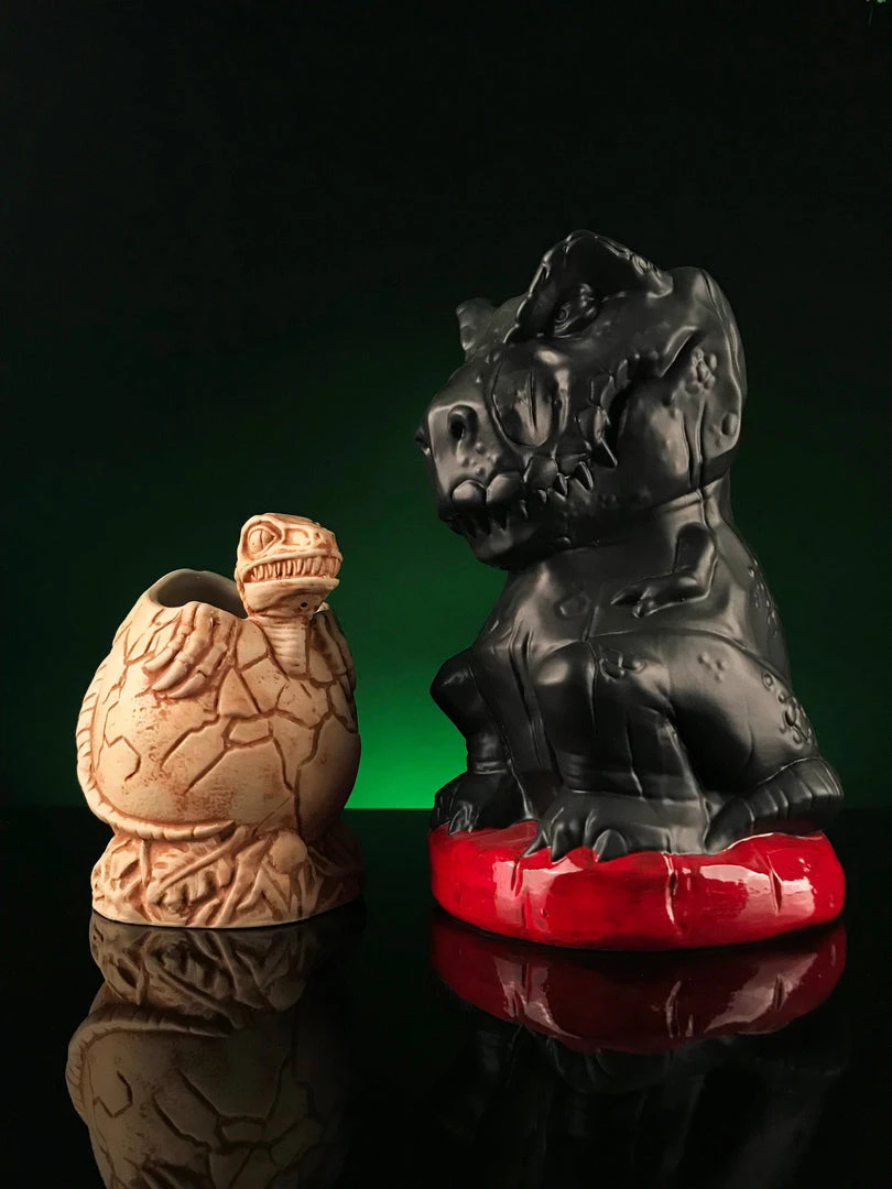 We have a T-Rex. A T-Rex tiki mug, that is! Having torn through her pen’s fence, Rexy sits, waiting to chomp on anything that moves, be it goats, lawyers, or those trying to leave without chipping in for the bar tab. She stands at a massive 9″ tall, and holds approx. 48oz of your favorite drink, and then some! So be sure to share, because finishing this by yourself might be 65 million years in the making!