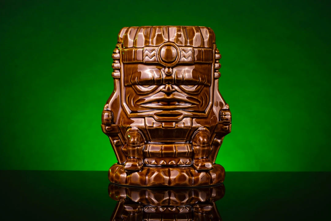 The Mechanized Organism Designed Only for Killing, or MODOK, has had his programing redesigned- now he’s a Mechanized Organism Designed Only for tiKi! Designed by Mike Bonanno and sculpted by Tufan Sezer, and produced with help from the mechanized organisms at Tiki Farm, MODOK hold approx. 36oz for you to kill your thirst with!