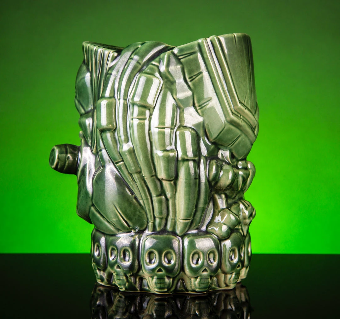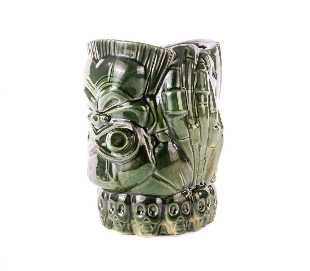 Stick around for the galaxy’s ultimate trophy- The Predator tiki mug! Featuring a tiki-ized Predator on one side, and Major “Dutch” Schaefer on the other, this mug holds approx. 40oz for with your thirst is a big as a house. If it pours, we can drink it!