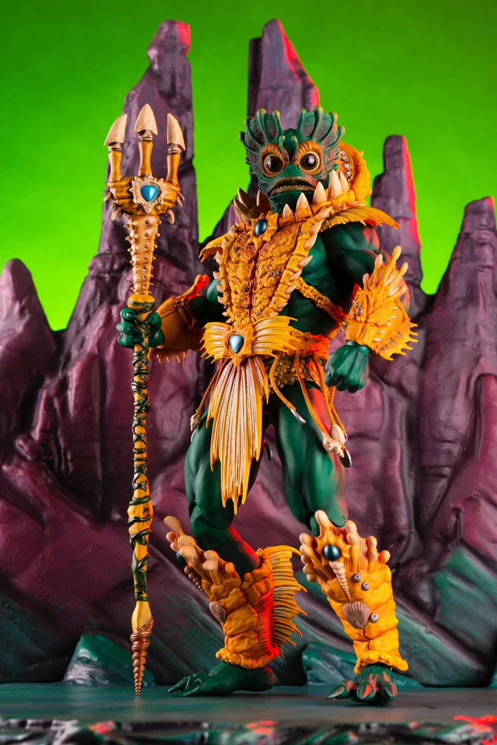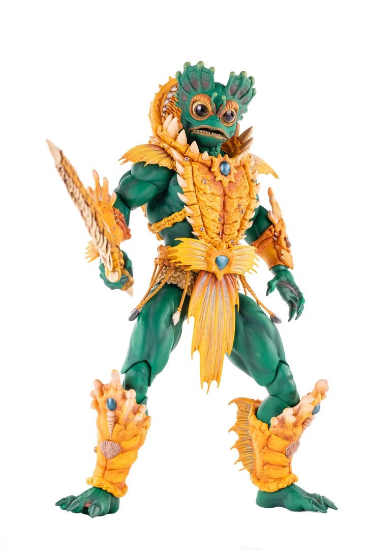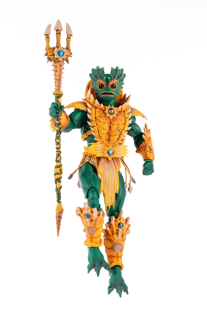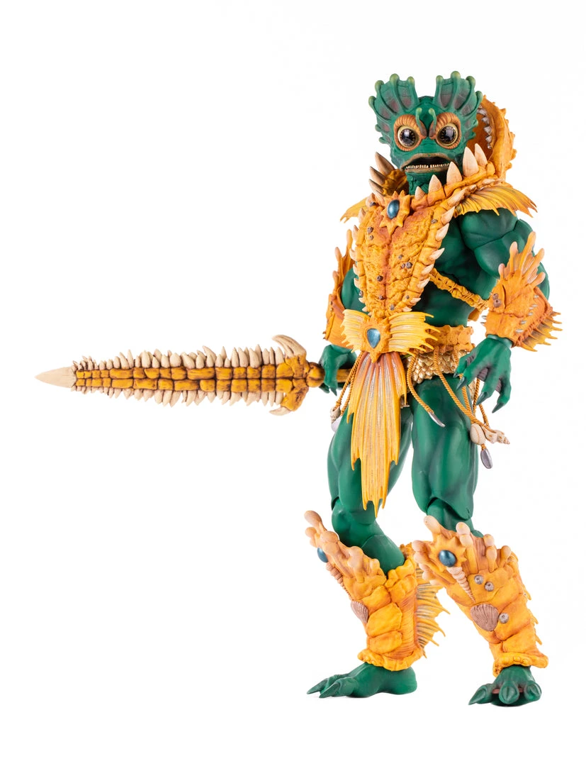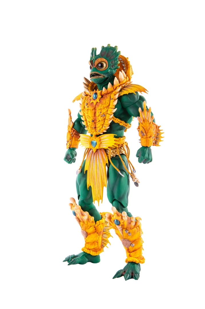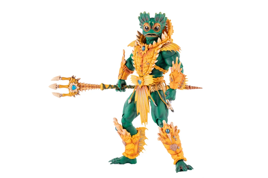 By the Power of Grayskull, you too can have the Power! Mondo is proud to bring you the next figure in our Masters of the Universe 1/6 scale line- Mer-Man! Featuring over 30 points of articulation, fish-eyes, sea-powered armor, and a lot of accessories, this is the most powerfully fishy figure you will ever find, from here to Eternia’s oceans!