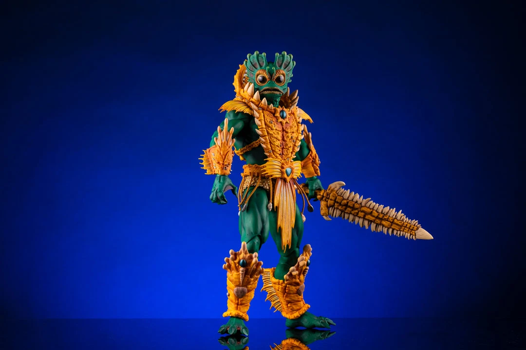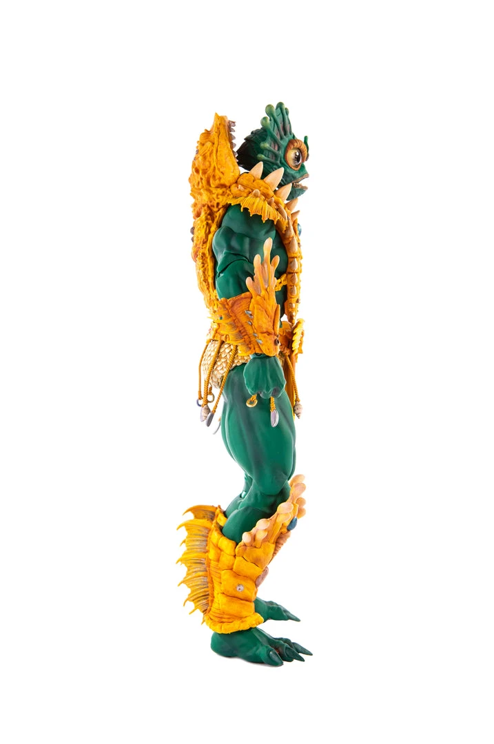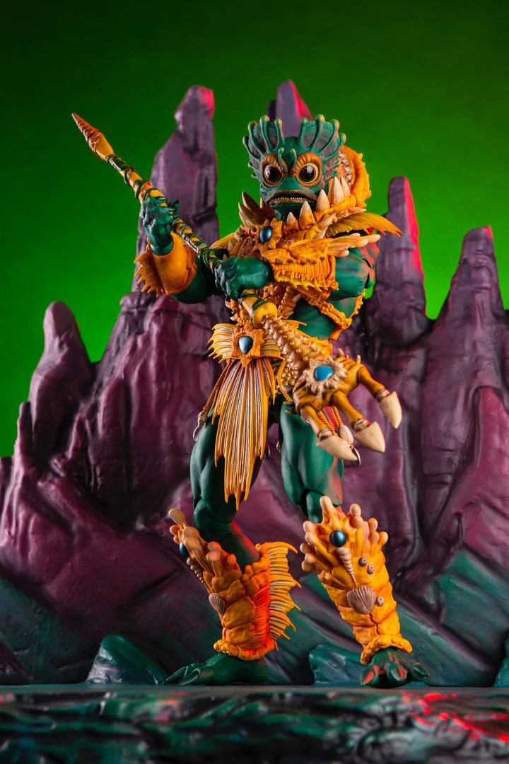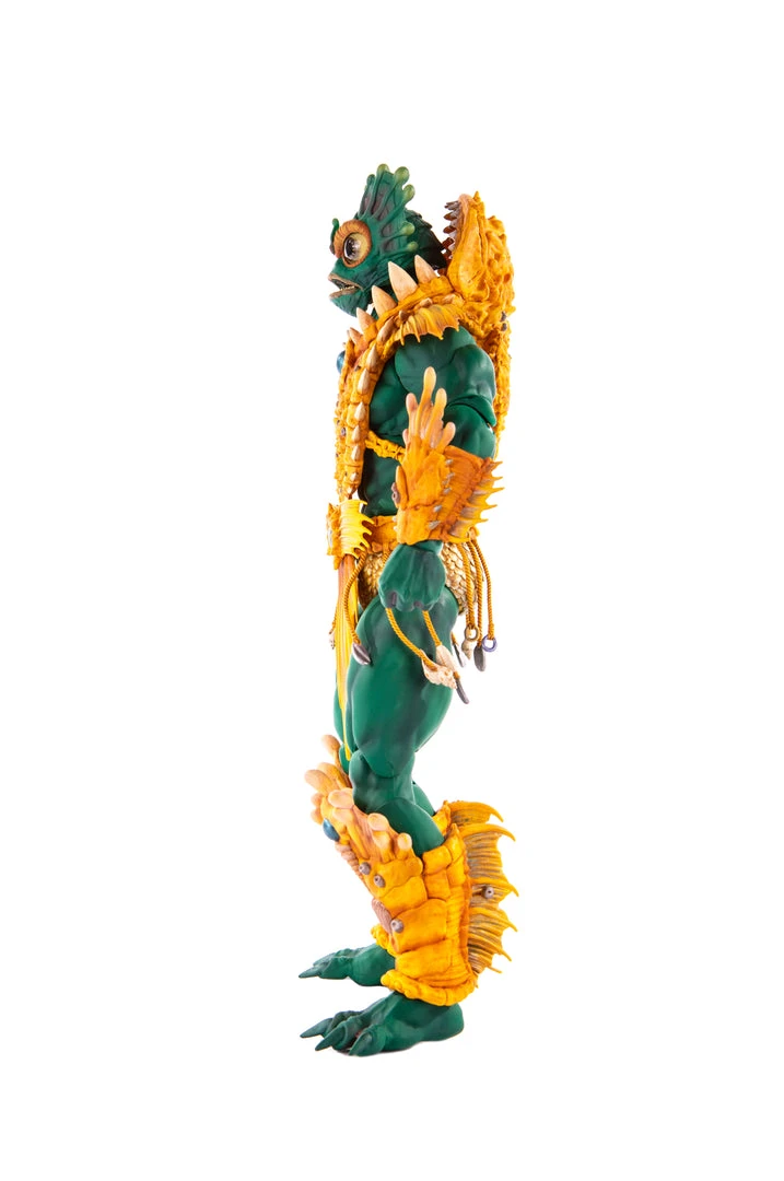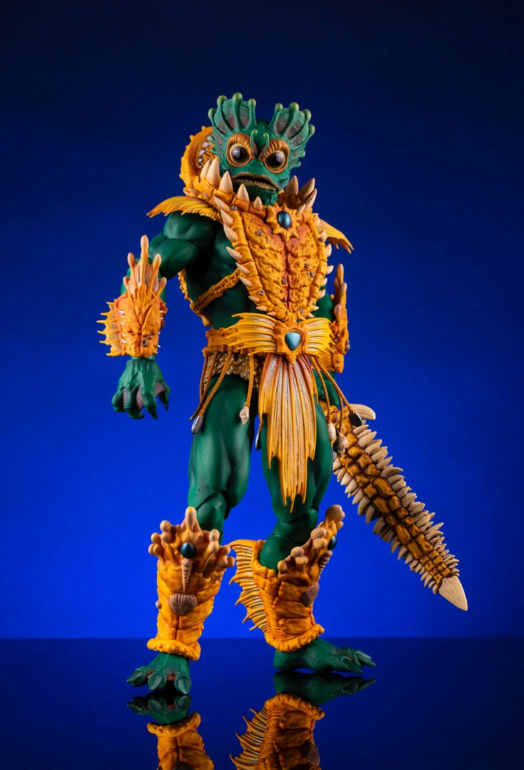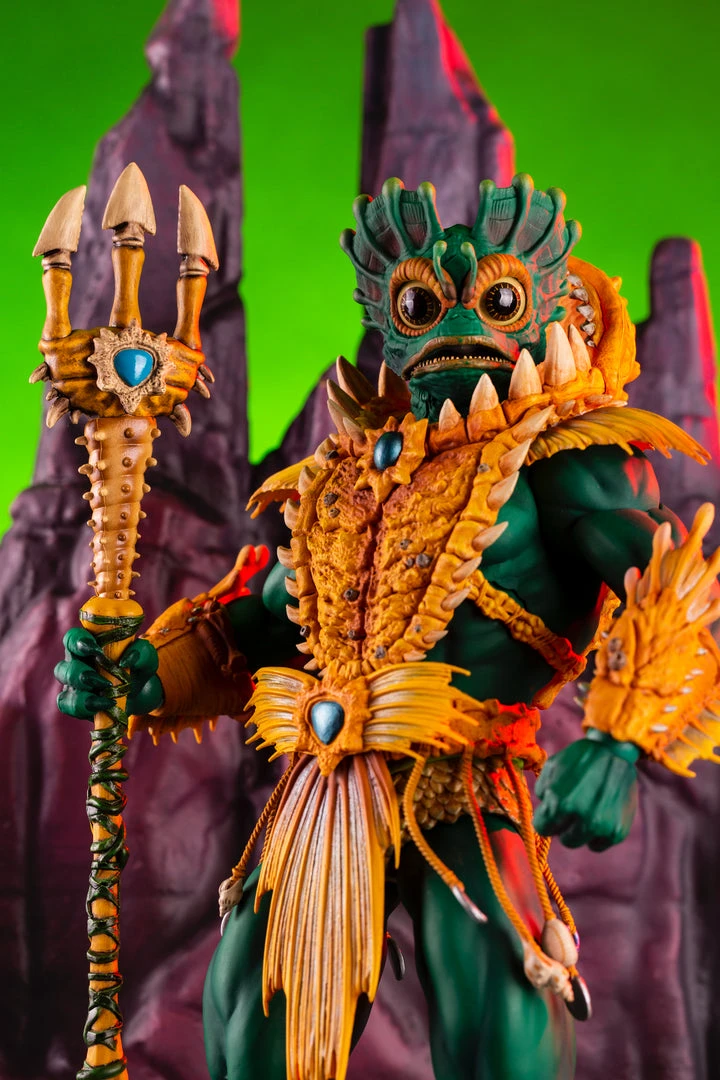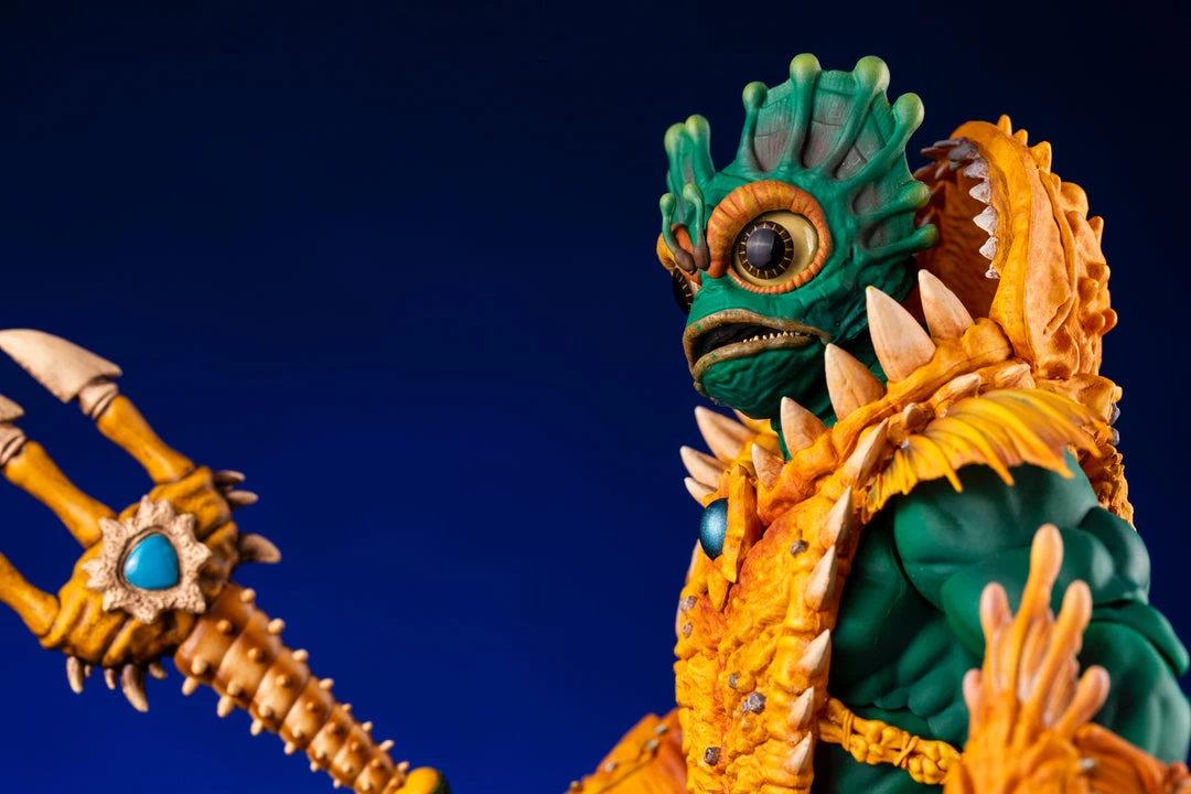 By the Power of Grayskull, you too can have the Power! Mondo is proud to bring you the next figure in our Masters of the Universe 1/6 scale line- Mer-Man! Featuring over 30 points of articulation, fish-eyes, sea-powered armor, and a lot of accessories, this is the most powerfully fishy figure you will ever find, from here to Eternia’s oceans!