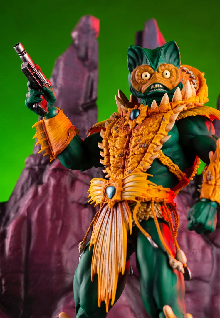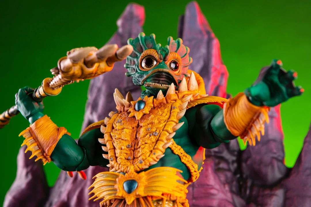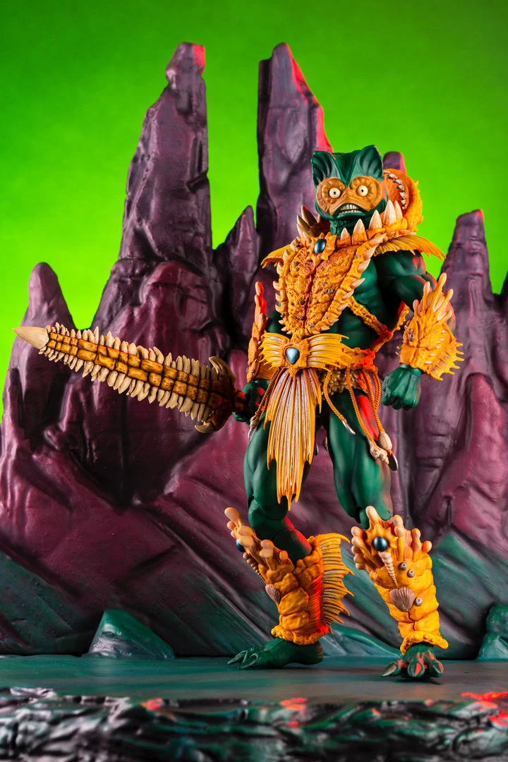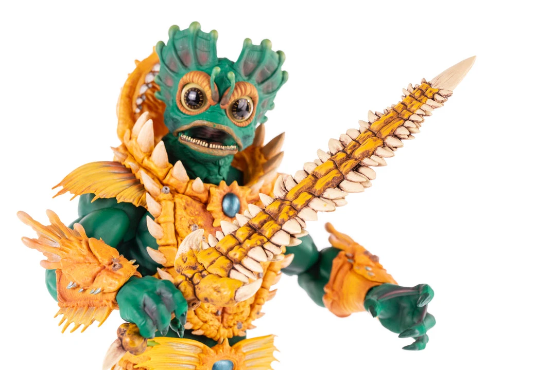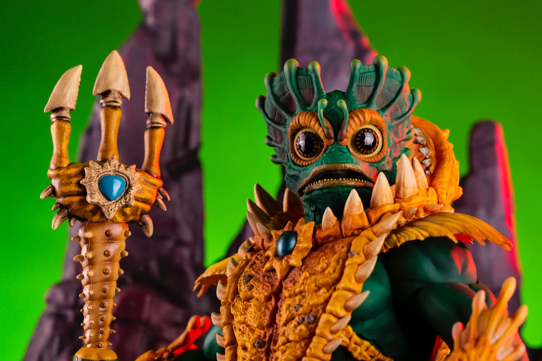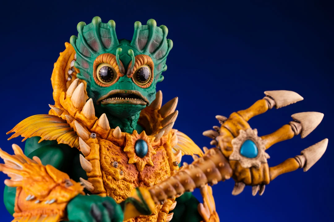 By the Power of Grayskull, you too can have the Power! Mondo is proud to bring you the next figure in our Masters of the Universe 1/6 scale line- Mer-Man! Featuring over 30 points of articulation, fish-eyes, sea-powered armor, and a lot of accessories, this is the most powerfully fishy figure you will ever find, from here to Eternia’s oceans!