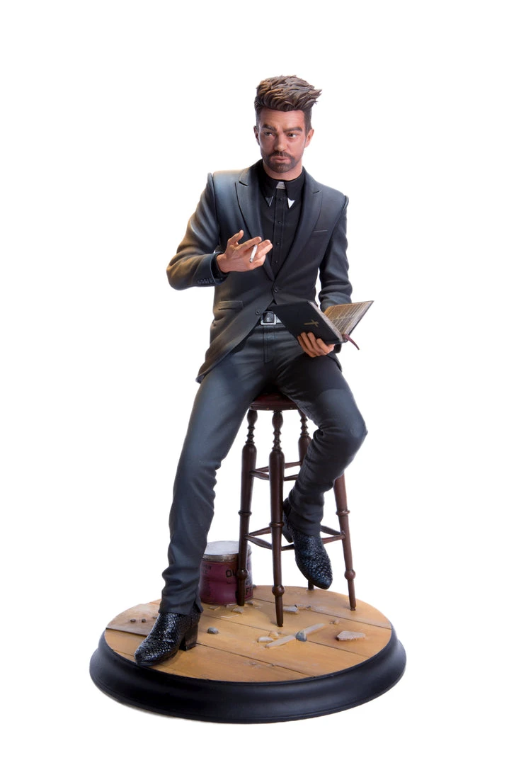 From the hit AMC series Preacher, the Jesse Custer statue is based on a painting by artist Rory Kurtz, capturing not only the physical details of the character, but painted to feature the dramatic lighting in the artwork as well. The statue depicts Jesse in repose, enjoying a smoke while brushing up on The Word, with a special coffee can hiding out behind him…