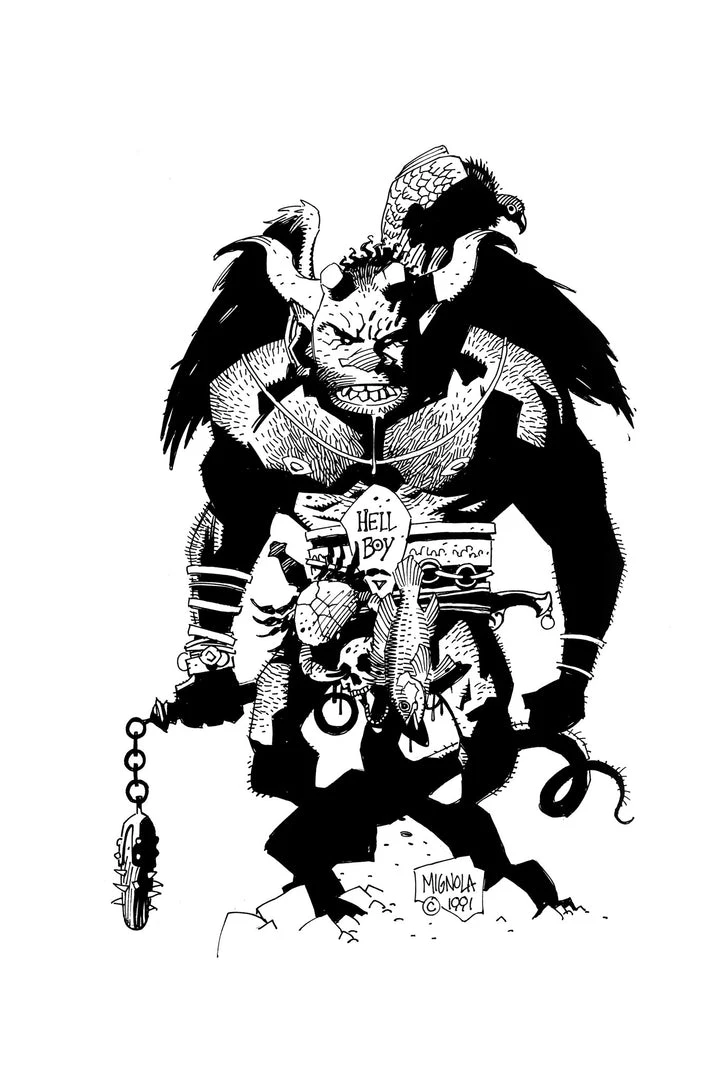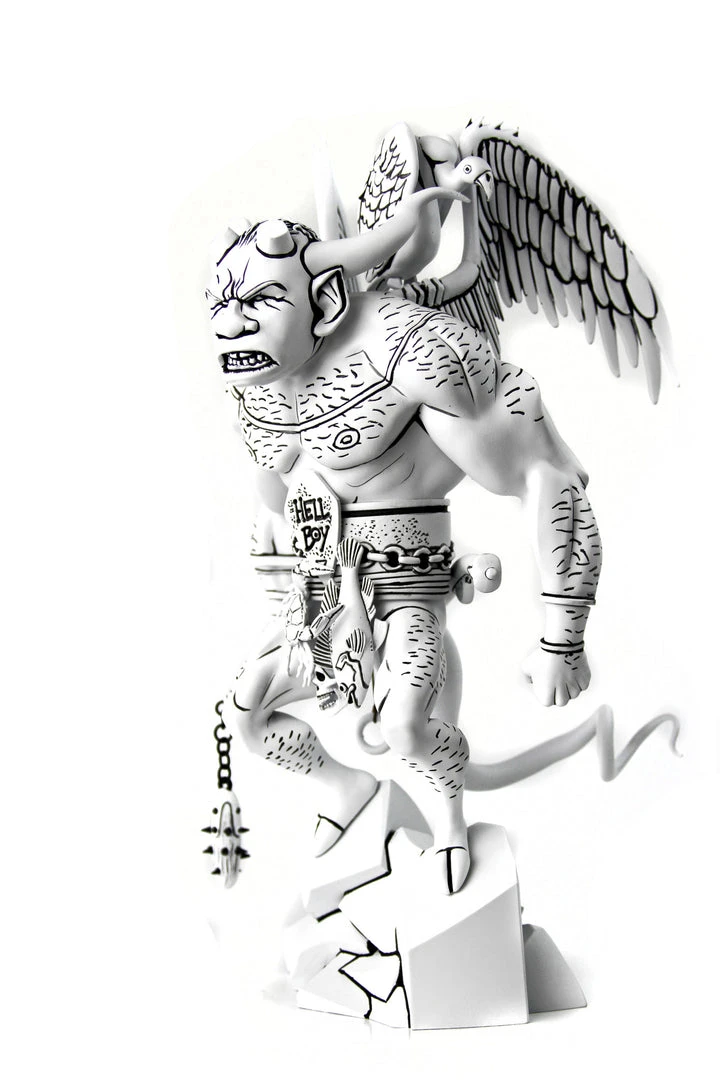 In 1991, comic artist & writer Mike Mignola did a Black & White illustration at a comic convention of a demon character that bore the name “Hellboy” on his belt. This was the genesis of the filed-horned fighter of the supernatural known and loved today. Mondo is excited to bring the original concept to life with a 12″ statue showcasing all the strange and fun details of the original drawing. Now is a Hell of a time to bring this piece of comic history home!