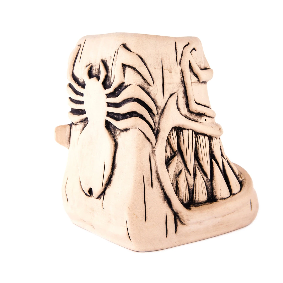 This regular edition of the Venom Tiki Mug features a black wipe glaze on natural stoneware ceramic!