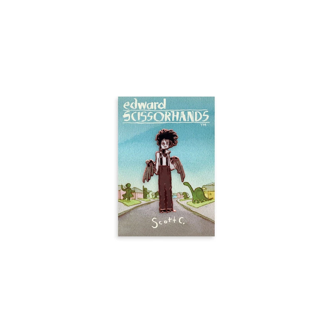 We are pleased to present a new enamel pin design by the effortlessly talented and unique Scott C. We started working on this pin in May 2017 – three years later, and we could not be happier with this charming version of Edward. Designer Bruce Yan helped transform Scott Cβs watercolor painting into an antique copper enamel pin, a tricky task of plucking a two-dimensional character into a 3-D format. The packaging is also a labor of love turned watercolor illustration of his topiary menagerie.