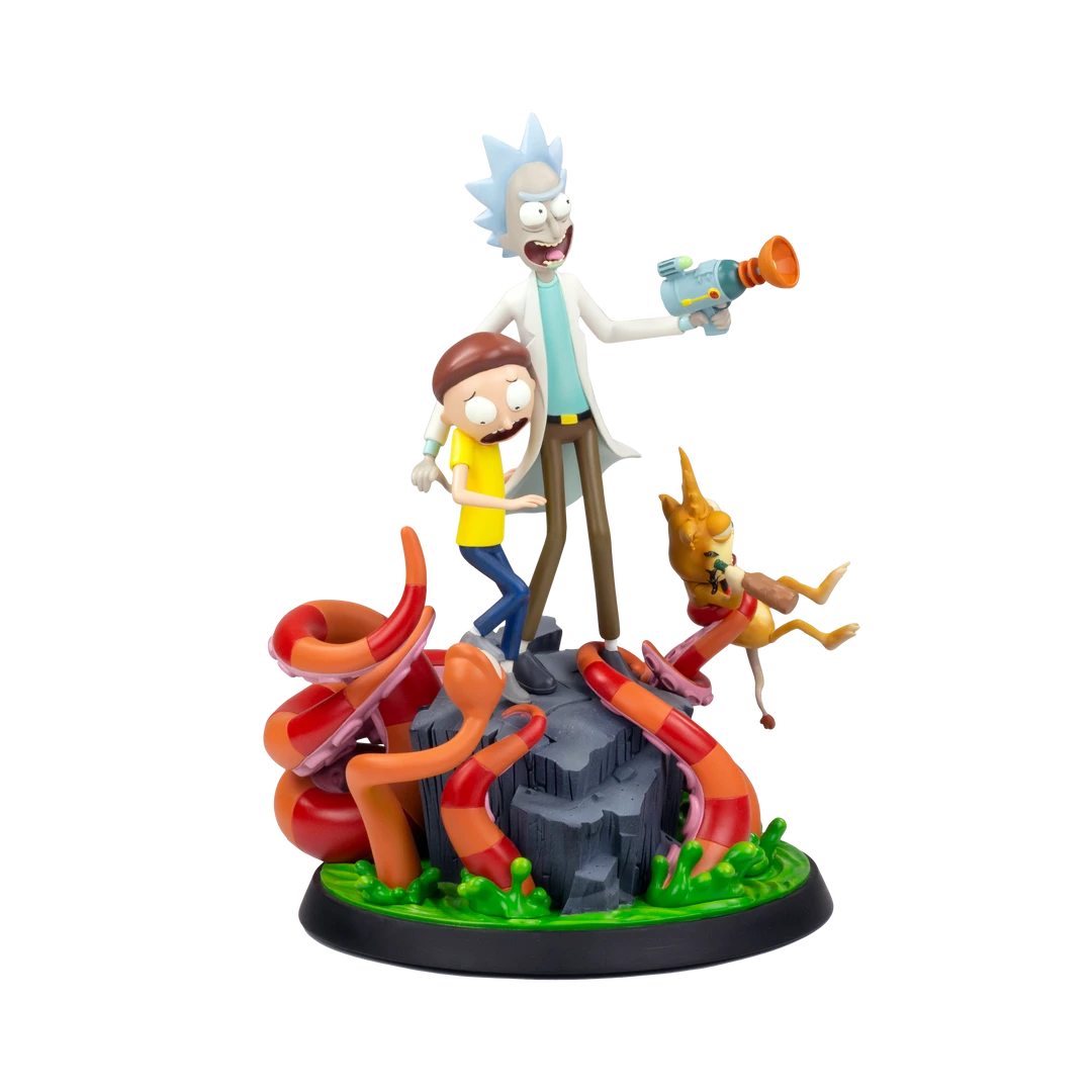 Designed by Eric Siebenaler, sculpted by Tufan Sezer, and painted by Mara Ancheta, with packing design by Florian Bertmer and Mike Bonnano. This statue lovingly brings the bonkers character design into vivid 3D, and along with Squanchy, features multiple interchangeable tentacles and hands.